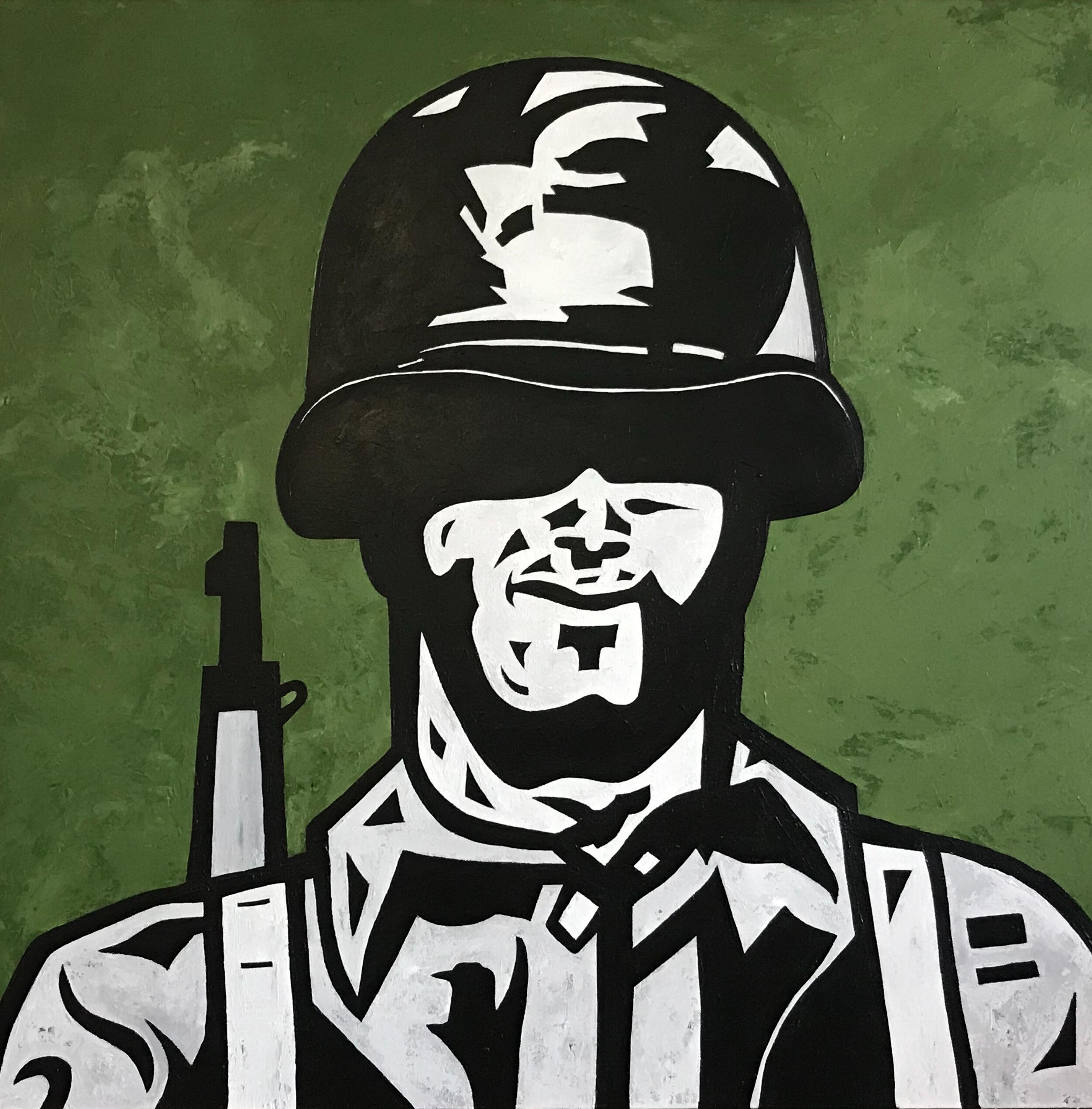 "Civil War" channels the hardened stare of a soldier divided by duty and identity. With bold lines and stark contrasts, the painting reflects the inner conflict of a man caught in a nation torn apart—resolute, weary, and forever changed.